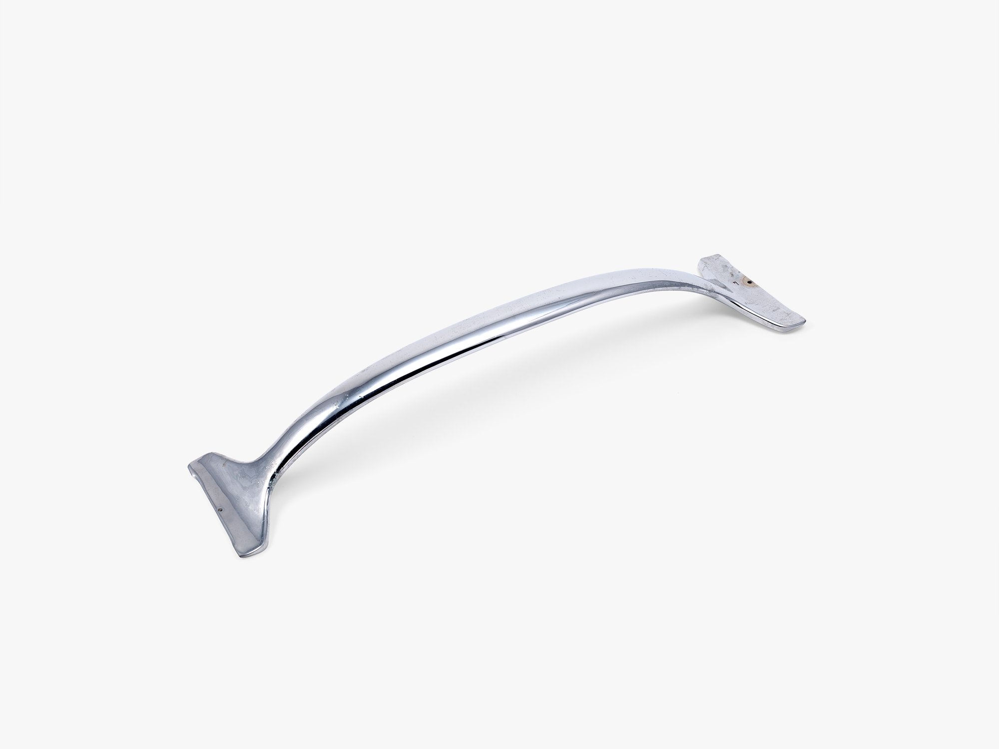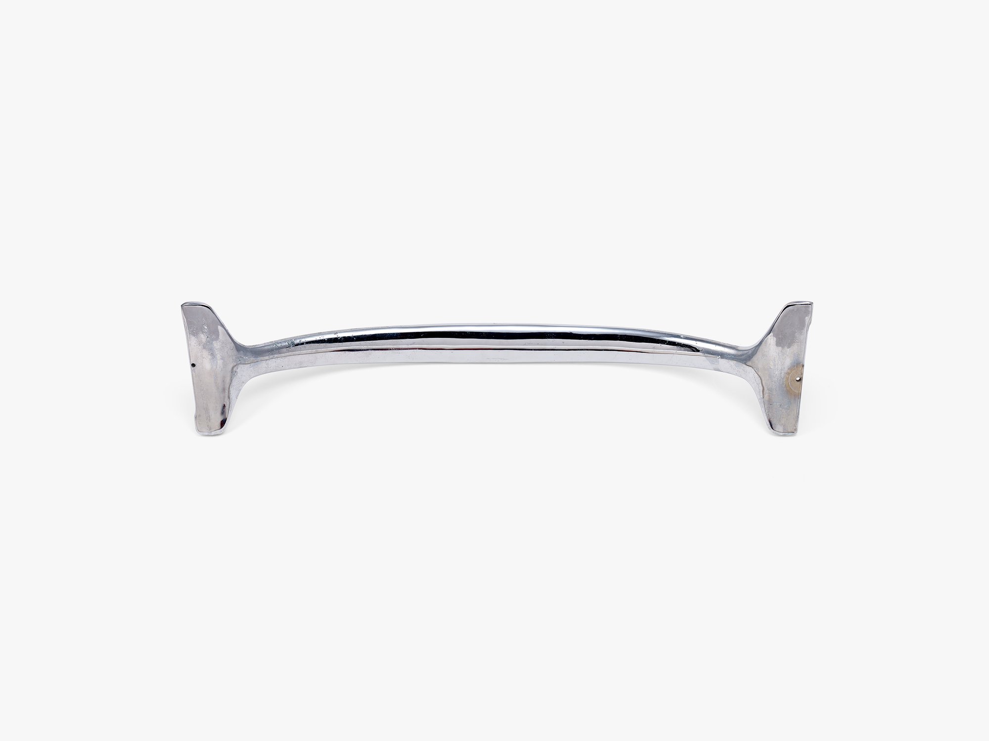 A key conceptual feature of the Eames Aluminum Group is the pair of aluminum spreaders that hold the upholstery taut between two aluminum side members. These spreaders create the necessary tension for transforming fabric into a supportive seat and backrest. Dubbed “antlers” by the Eames Office staff thanks to their distinctive shape, one spreader is located midway up the chair’s back and doubles as a handle. The other is located underneath the seat and serves both to stretch the textile and to attach the body of the chair to its base. Attaching a handle to the back of a chair made the already lightweight designs even easier to move around a home, reception lobby, or any other venue in which the chair might be used. When considered in light of the fact that the collection was initially called the Indoor-Outdoor Group, this attention to movability suggests that the Eameses may have envisioned the chairs as not only suited to both indoor and outdoor use, but perhaps even as multi-purpose pieces that could be relocated from living room to patio and back again.