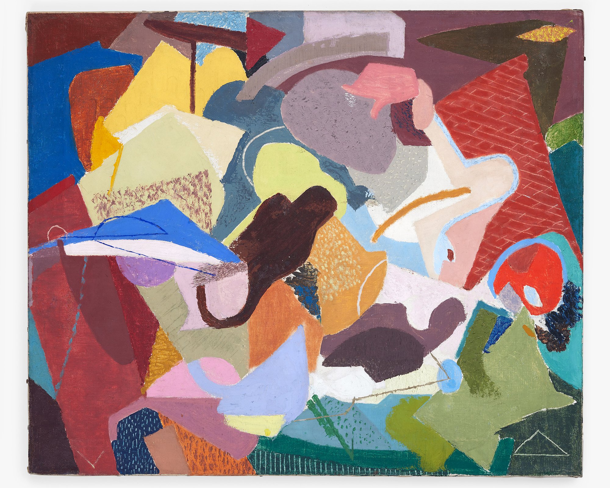 This is a figurative painting from Ray’s years studying at the Hans Hofmann School of Fine Arts in New York City. Hofmann introduced what would later become Abstract Expressionism into the American art scene.