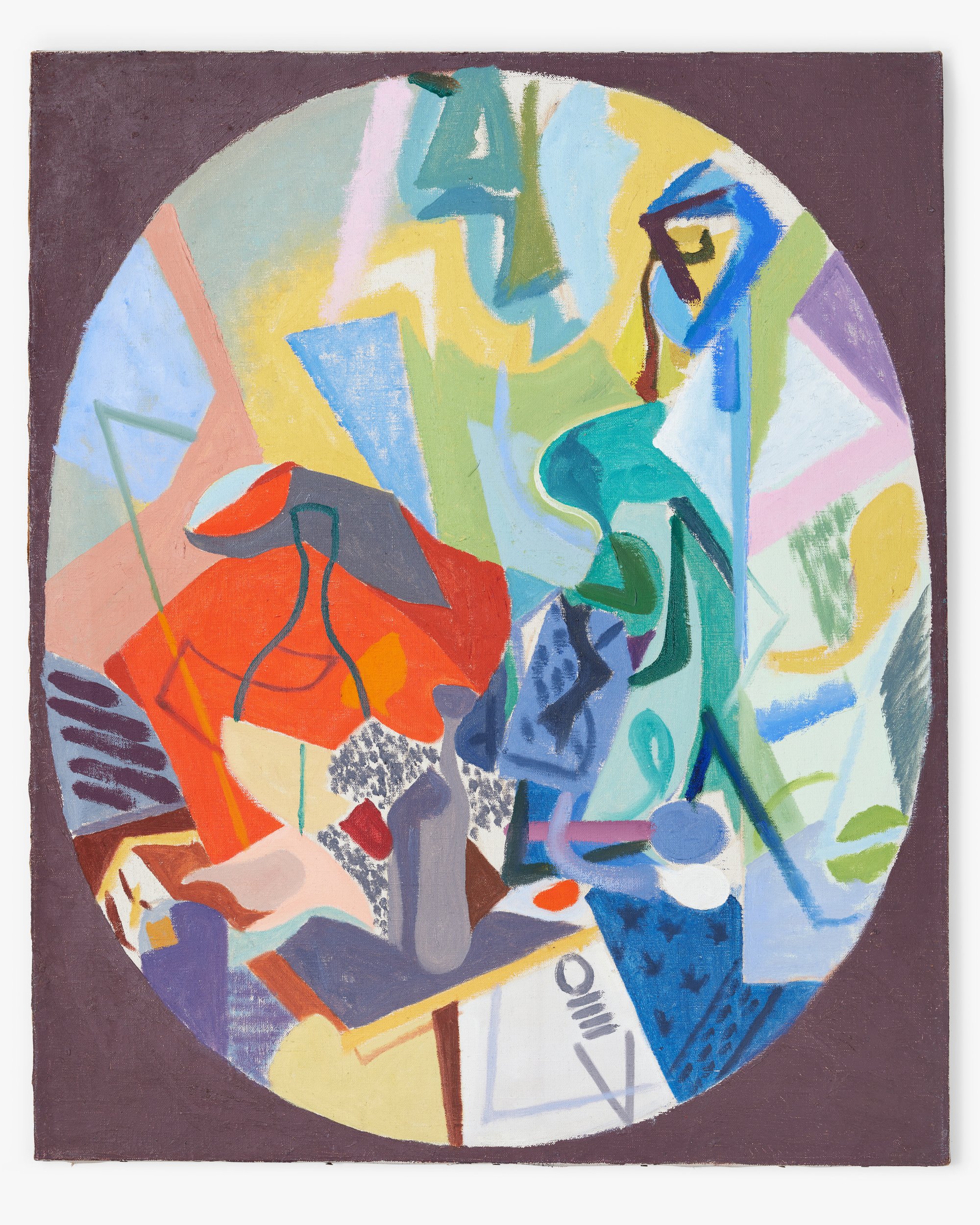 This is an abstract painting from Ray’s years studying at the Hans Hofmann School of Fine Arts in New York City. This oval still life could be her last painting at the Hofmann School after it moved to its final location at 52 West 8th Street. Kaiser’s fellow students that spring included Lee Krasner, Perle Fine, and Fritz Bultman.