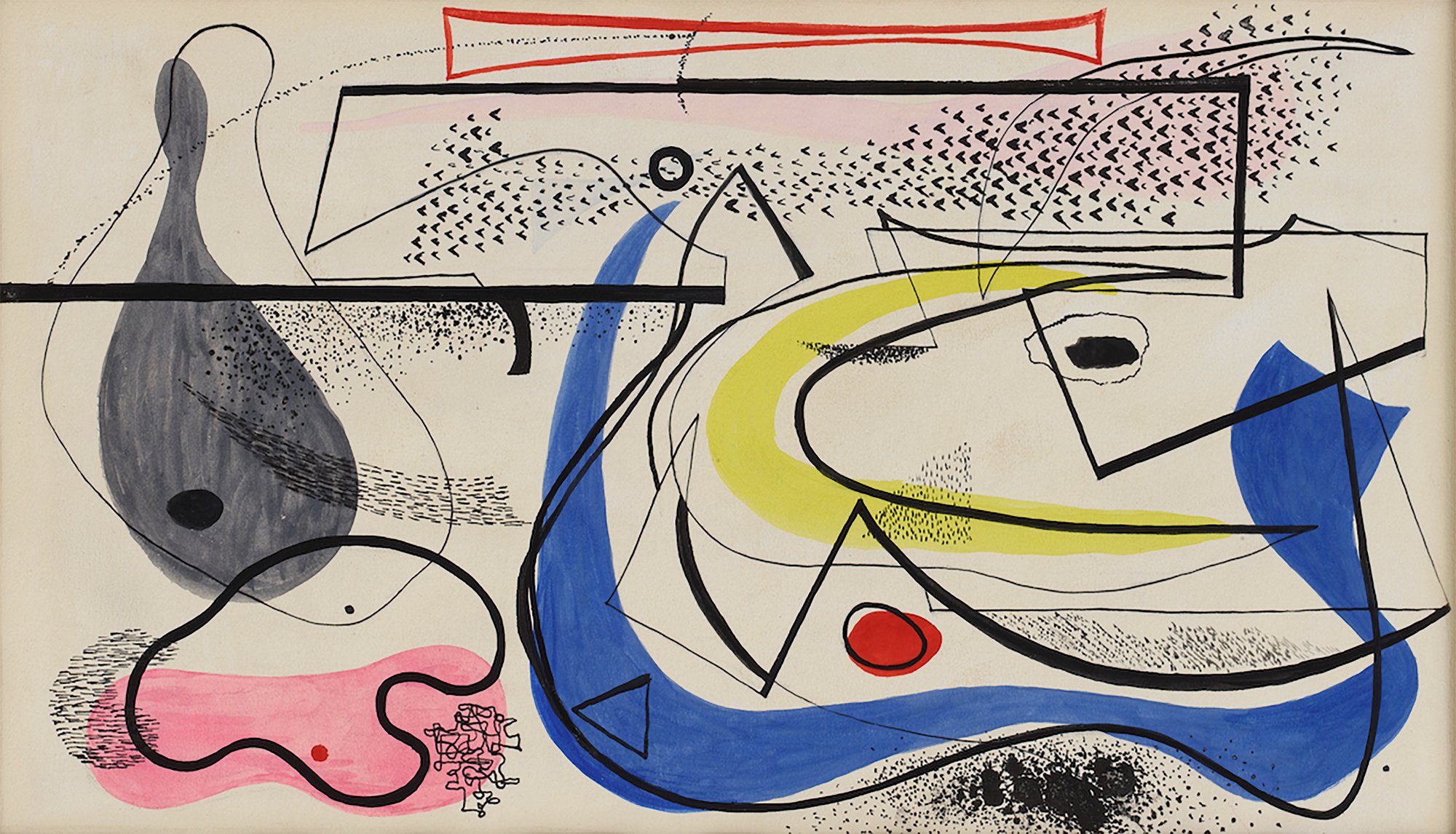 Ray studied with Hans Hofmann for six years, from 1933 to 1939. She dedicated this work to him because he was an important influence on her life and work. Ray’s nickname during the Hofmann years was Buddha.
