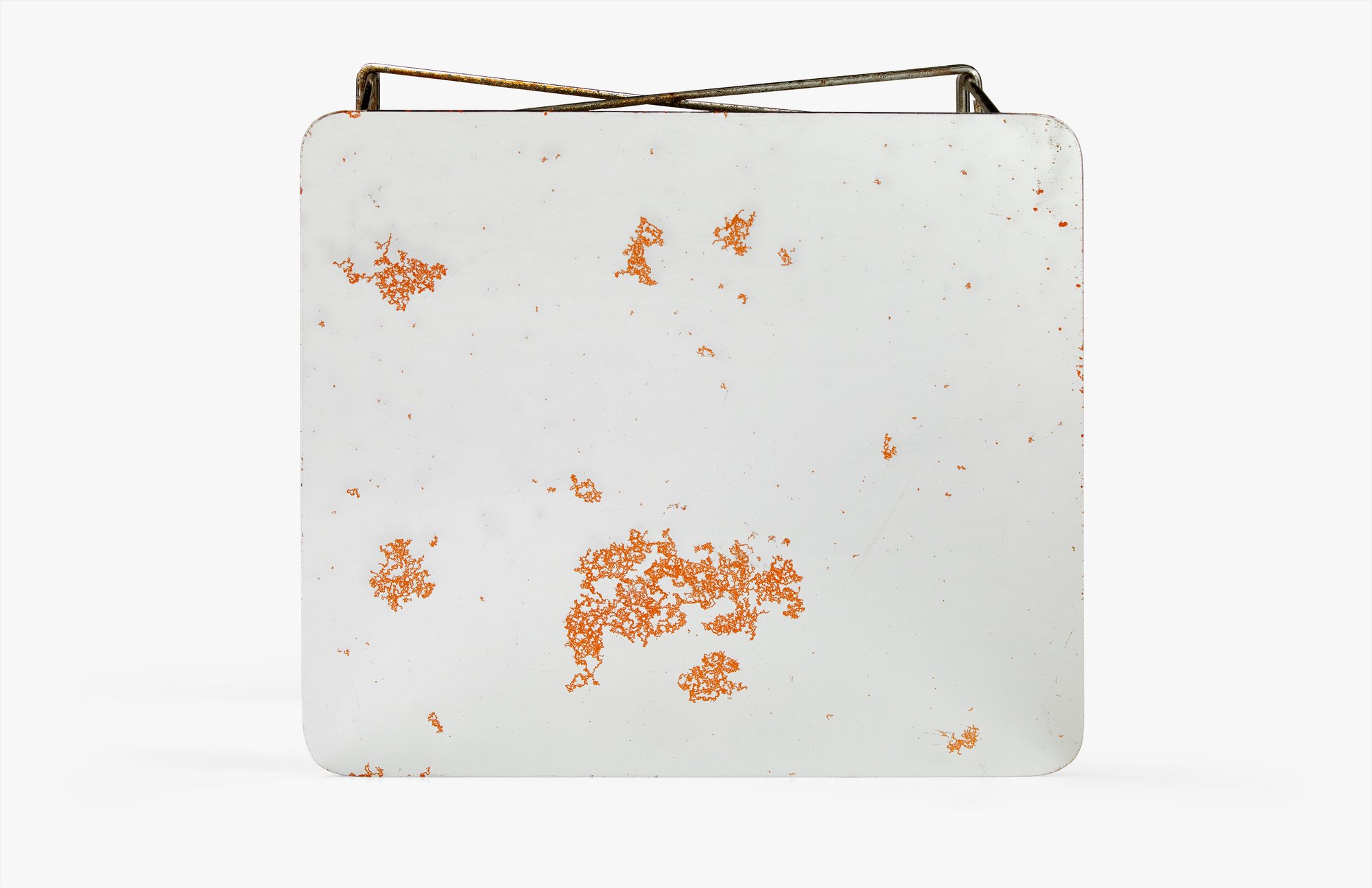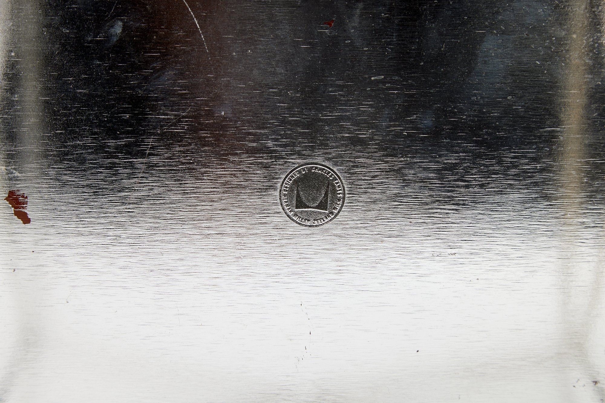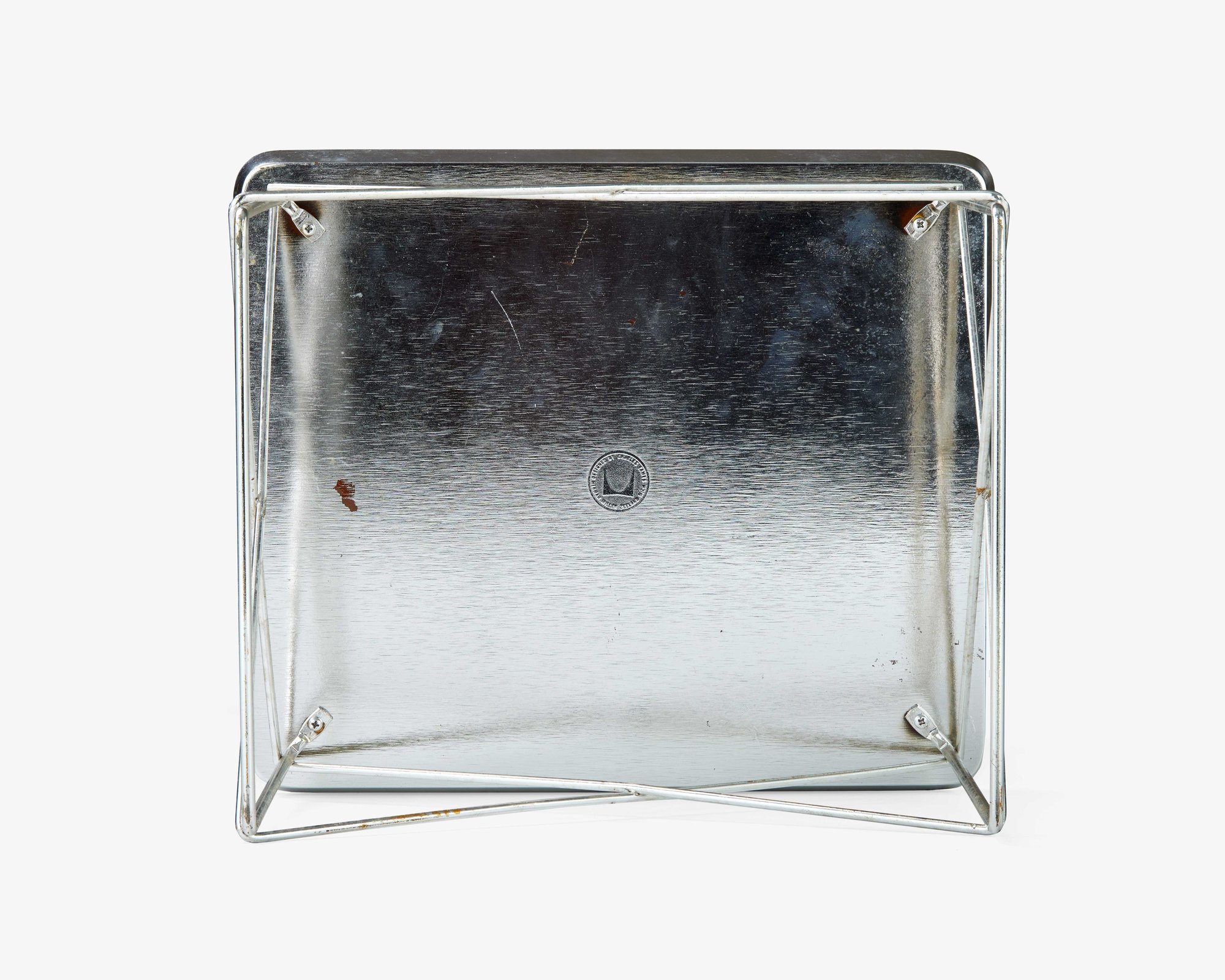This unique silver-coated table was made at the Eames Office and is a variation on the Low Table Rod, or LTR, production model that was introduced in 1950. The LTRs were occasional tables designed to be used as side tables, children’s play tables, or even stools. They used the same materials and production methods developed for earlier Eames table designs: plywood tops finished with either wood veneer or plastic laminate and metal rod bases attached to slender cross braces for stability. Despite these resemblances, the LTRs were promoted as part of a new wave of Eames furniture that included their molded plastic chairs—in a 1950 Herman Miller catalog the LTR was described as “an ideal companion to the plastic chair.” This example is distinguished from the production model by its silver-coated surface. The Eameses may have been experimenting with options for commercial production, or it is possible that this table was envisioned as something that could be employed for a special use, such as an exhibition installation or unique gift.