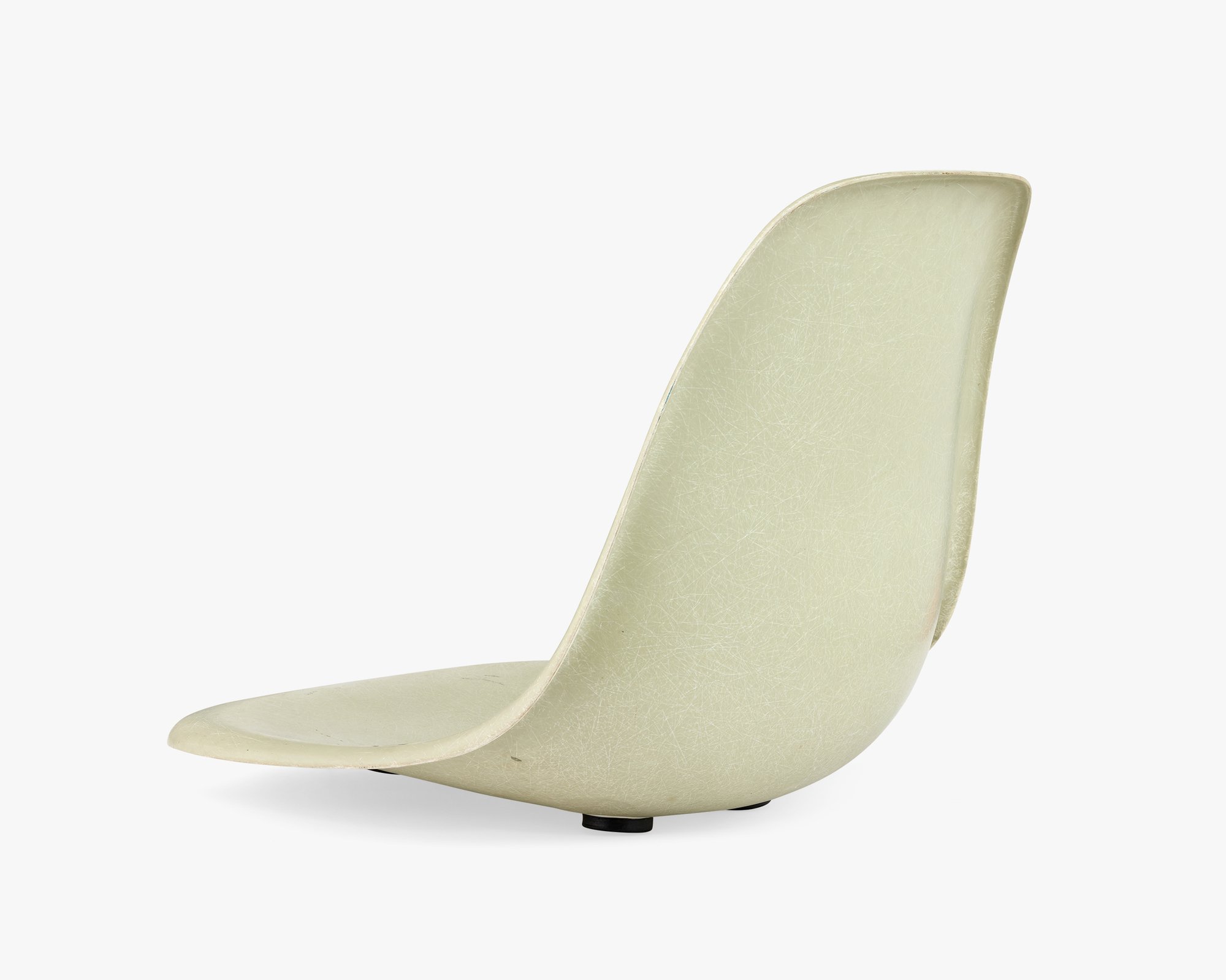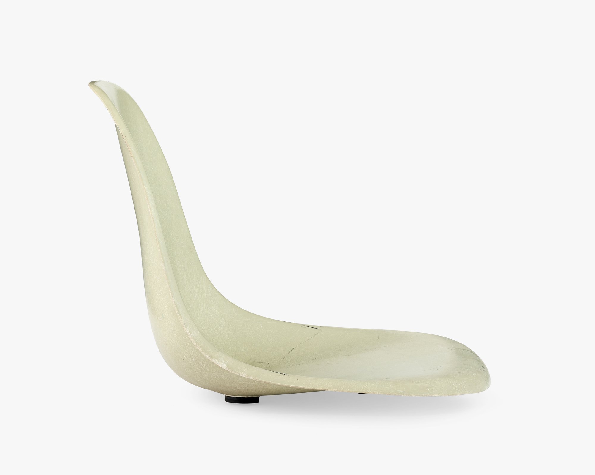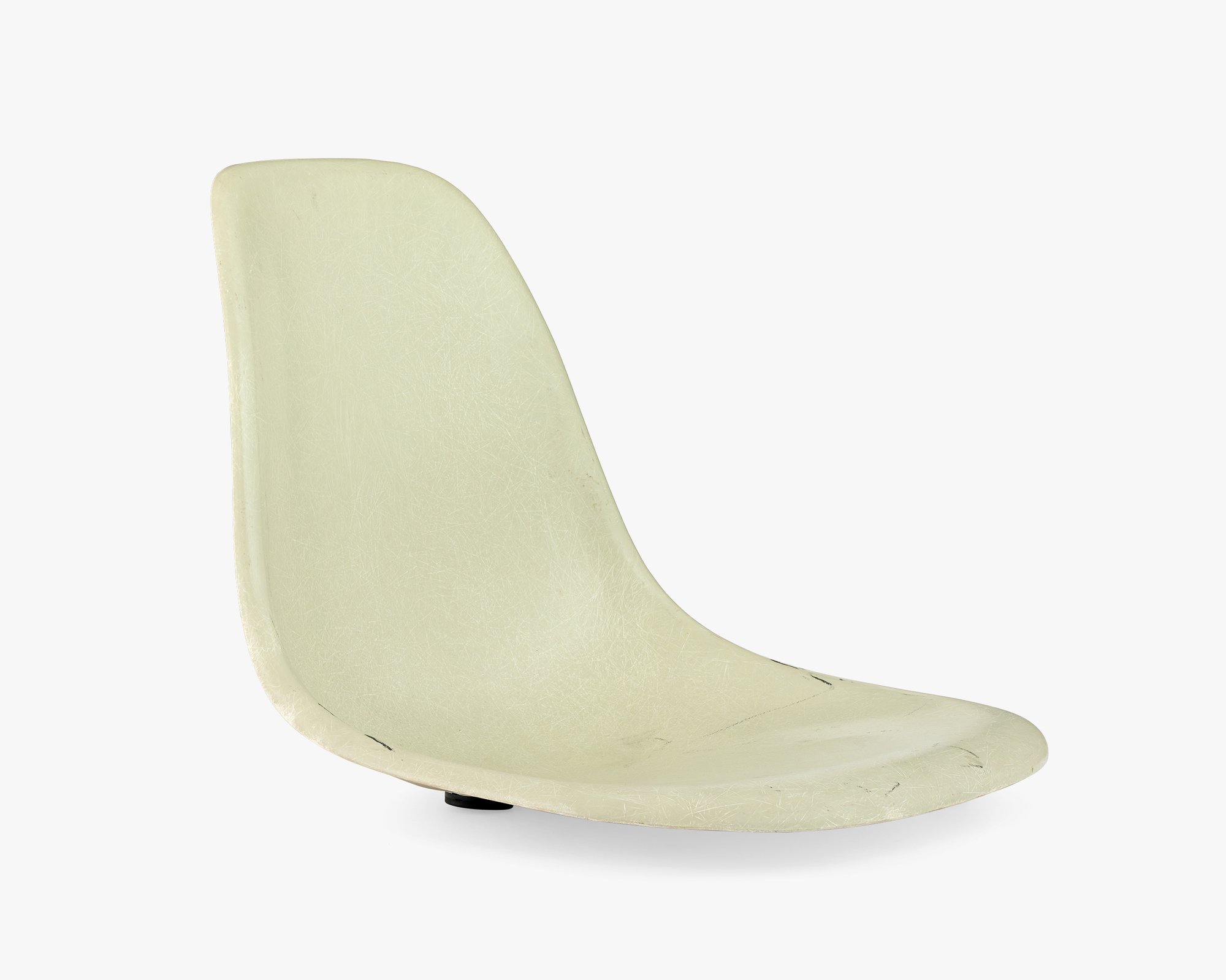 Fabricating the Side Shells turned out to be a greater challenge than Ray and Charles anticipated. The earliest Side Shells that went into production in 1953 were very thin and tended to crack at the edge where the back rises from the seat. This example is a “survivor” that didn’t crack. The Eameses continued to iterate on the design—trying to find the right balance of weight and strength. They started producing the thicker shell two years later, which remained unchanged until 1993.