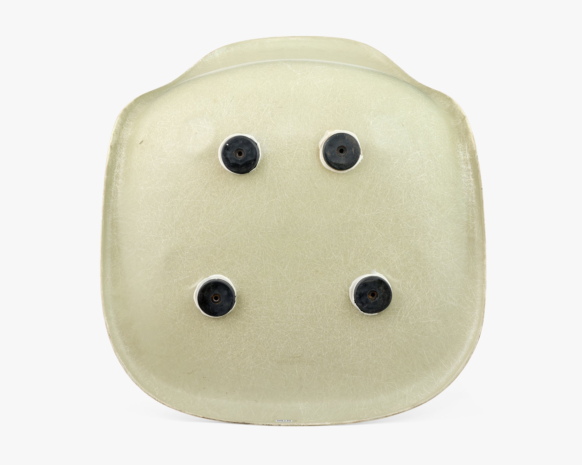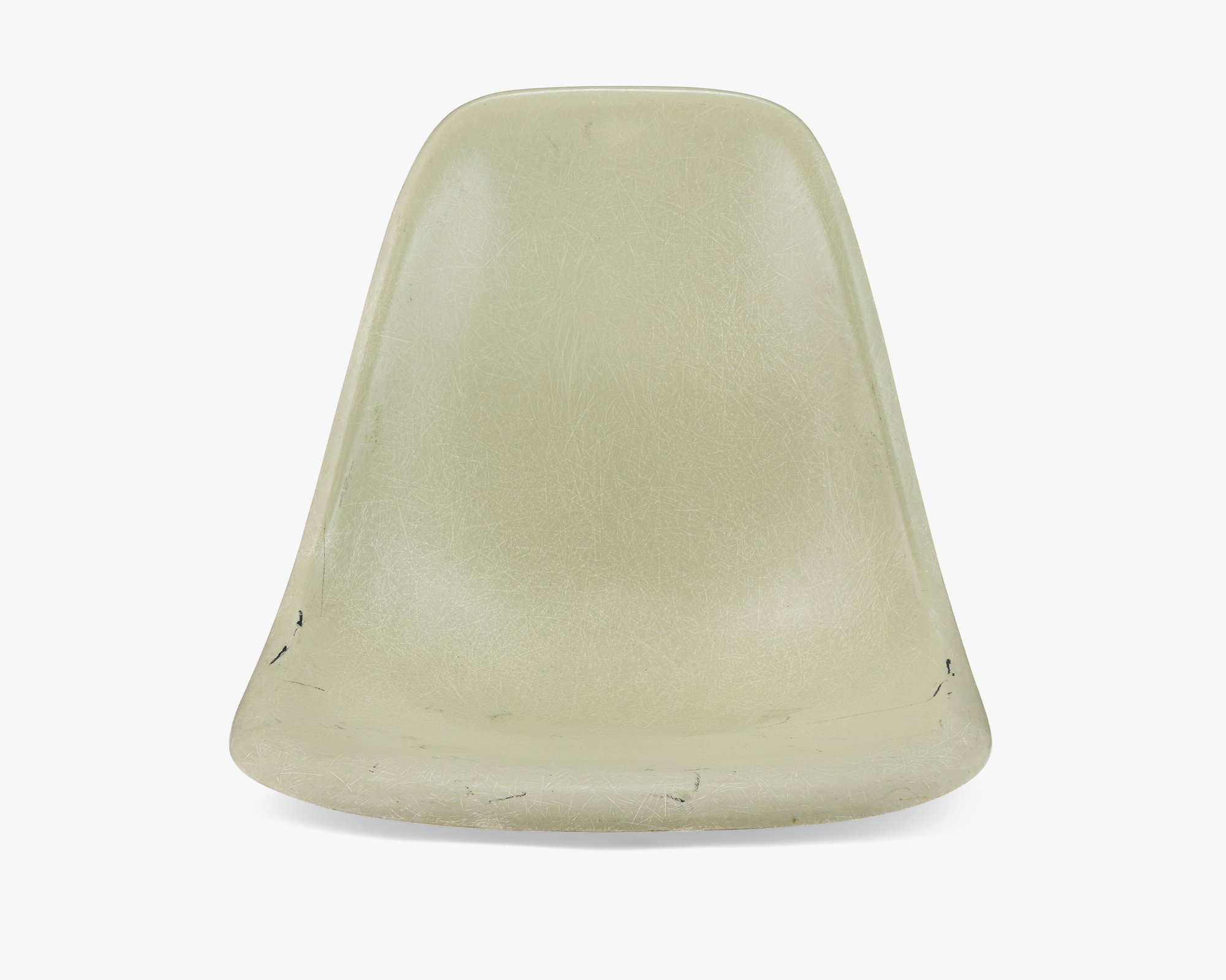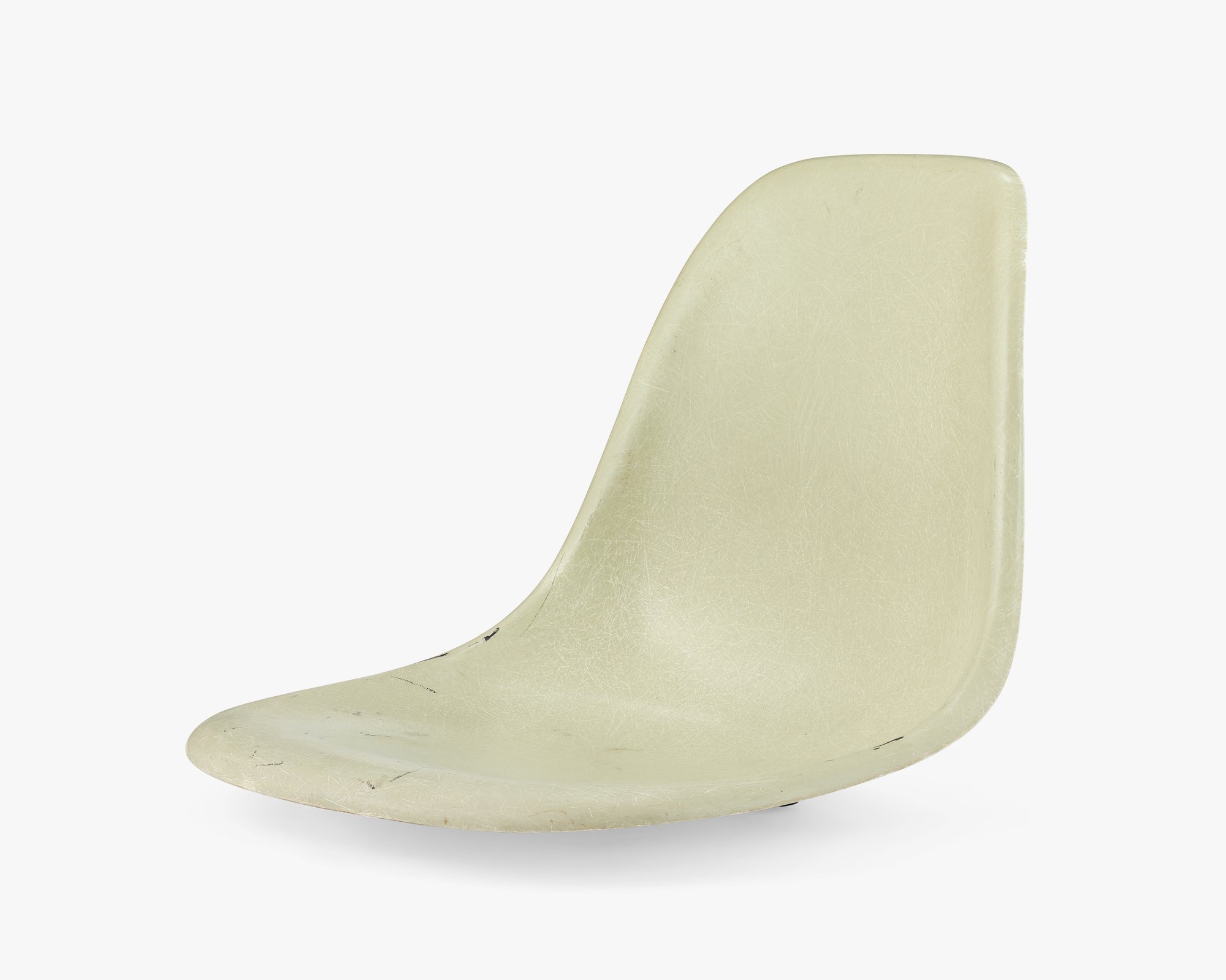 Fabricating the Side Shells turned out to be a greater challenge than Ray and Charles anticipated. The earliest Side Shells that went into production in 1953 were very thin and tended to crack at the edge where the back rises from the seat. This example is a “survivor” that didn’t crack. The Eameses continued to iterate on the design—trying to find the right balance of weight and strength. They started producing the thicker shell two years later, which remained unchanged until 1993.