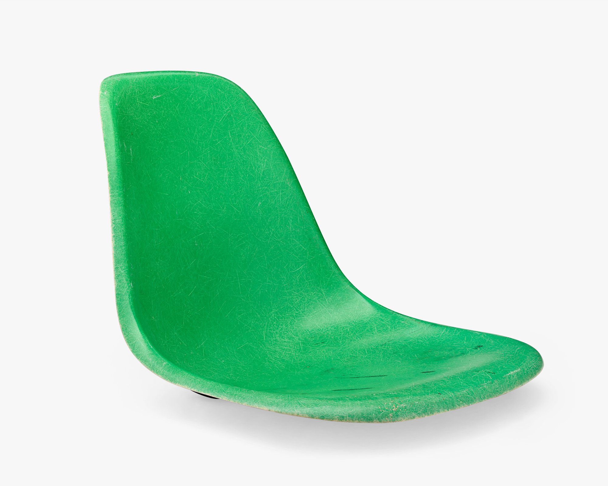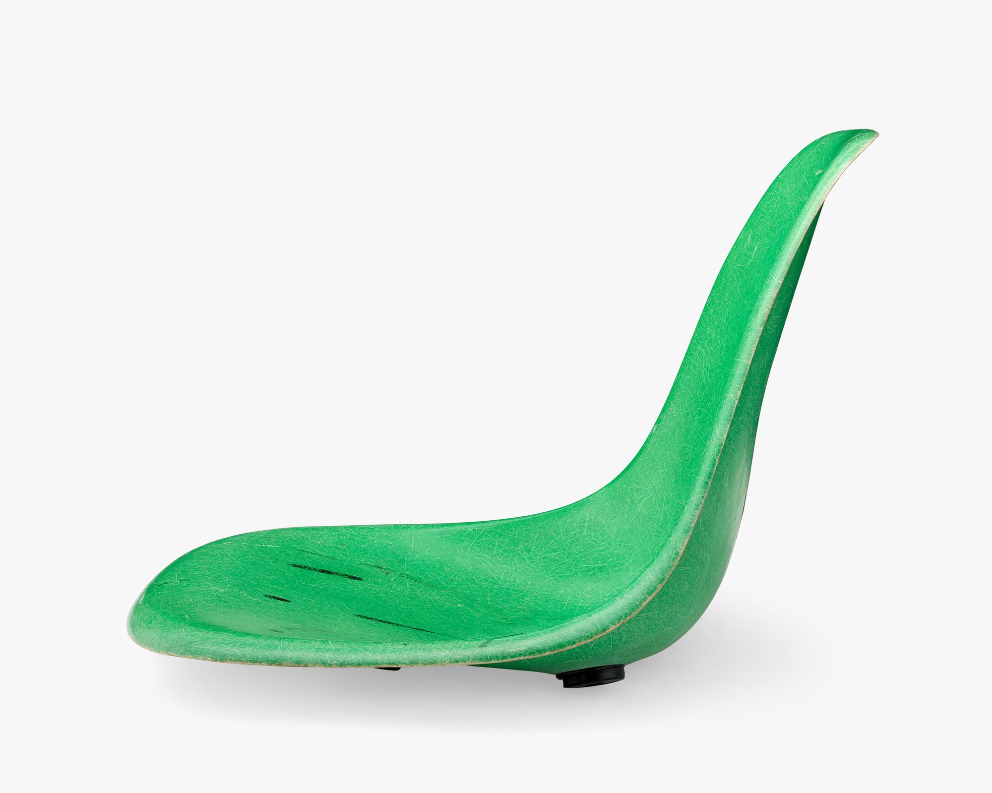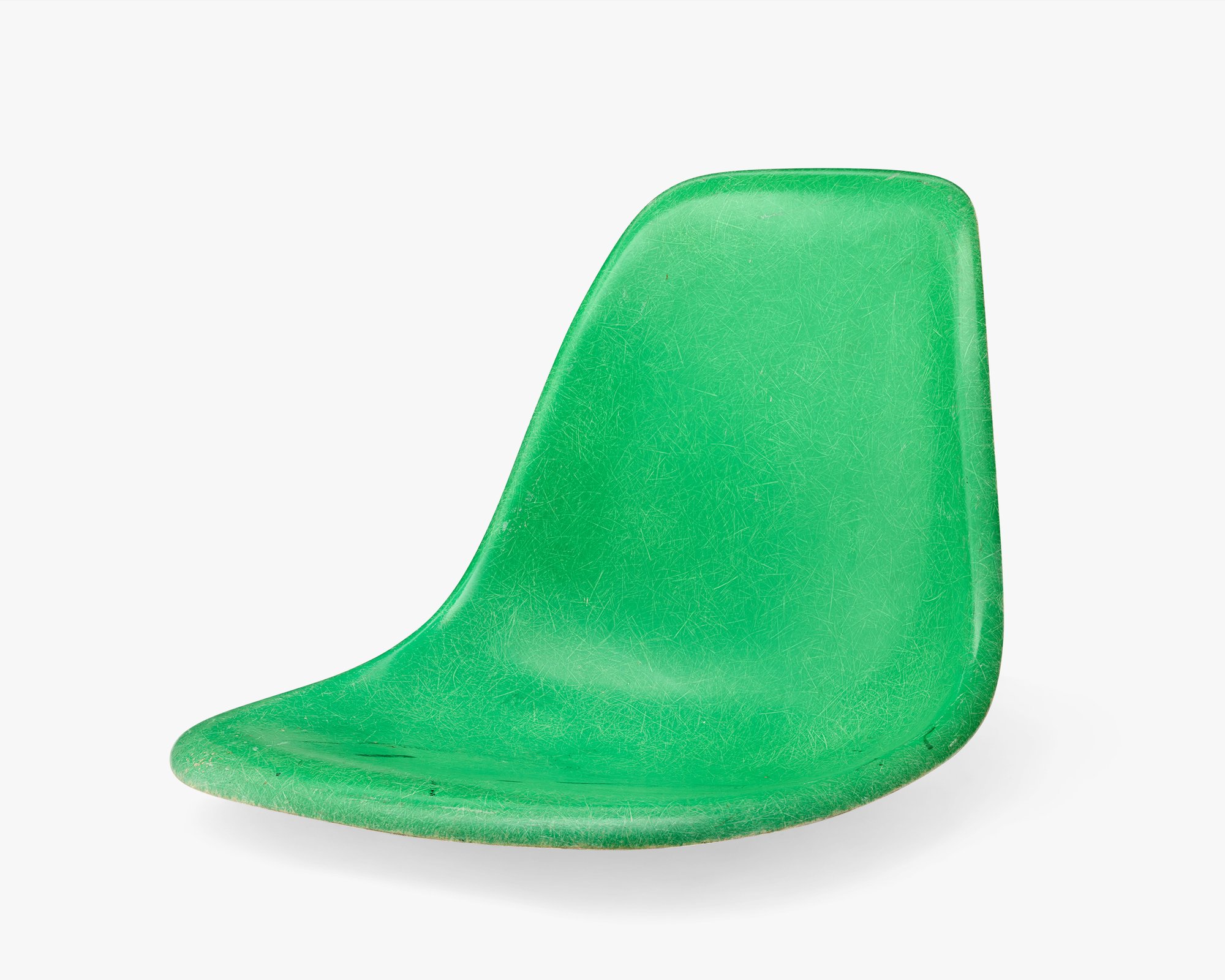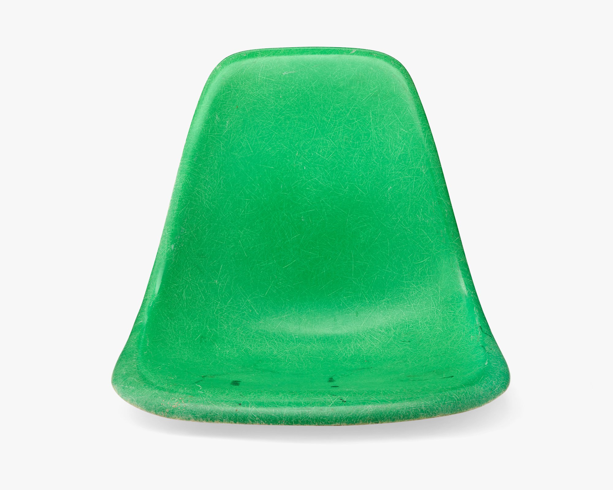 The collection has several color-test samples from different fiberglass manufacturers. This Green Side Shell is a color-test sample sent by the Cimastra division of the Cincinnati Milling Machine Company.