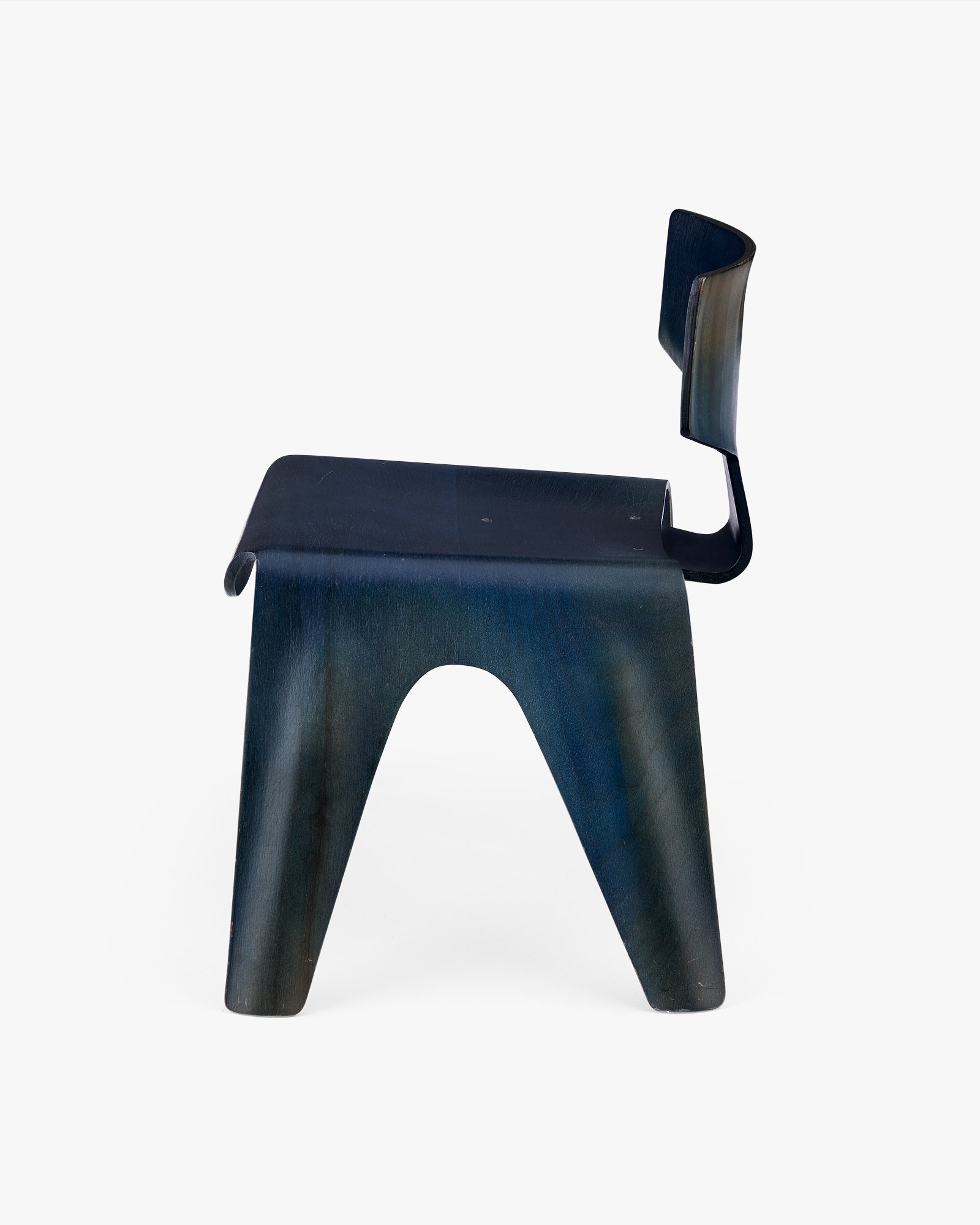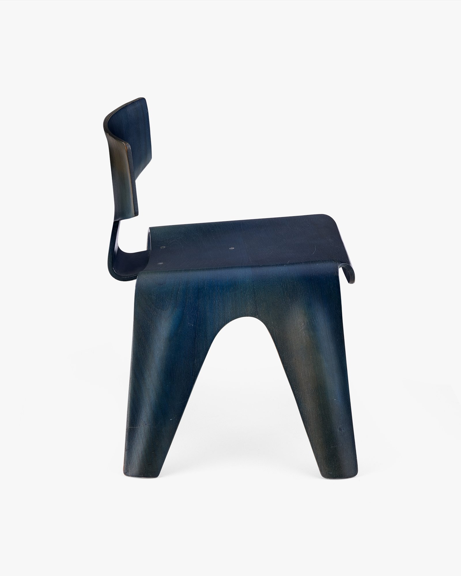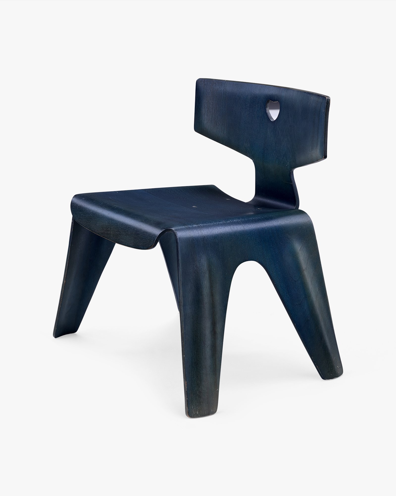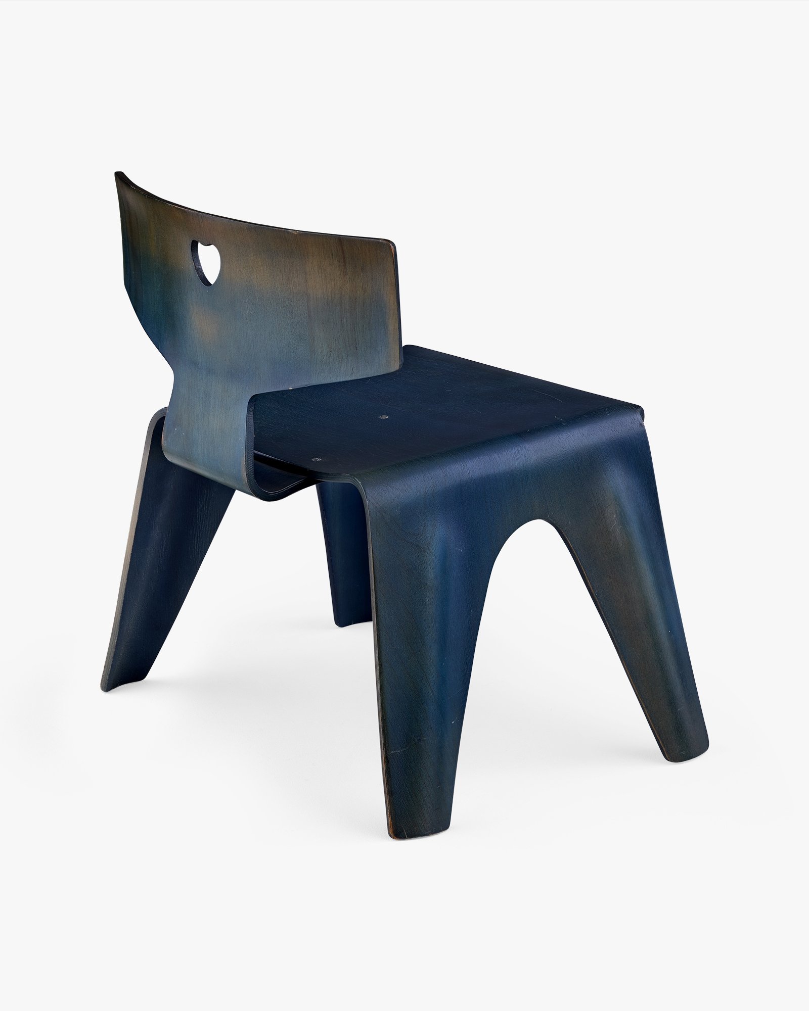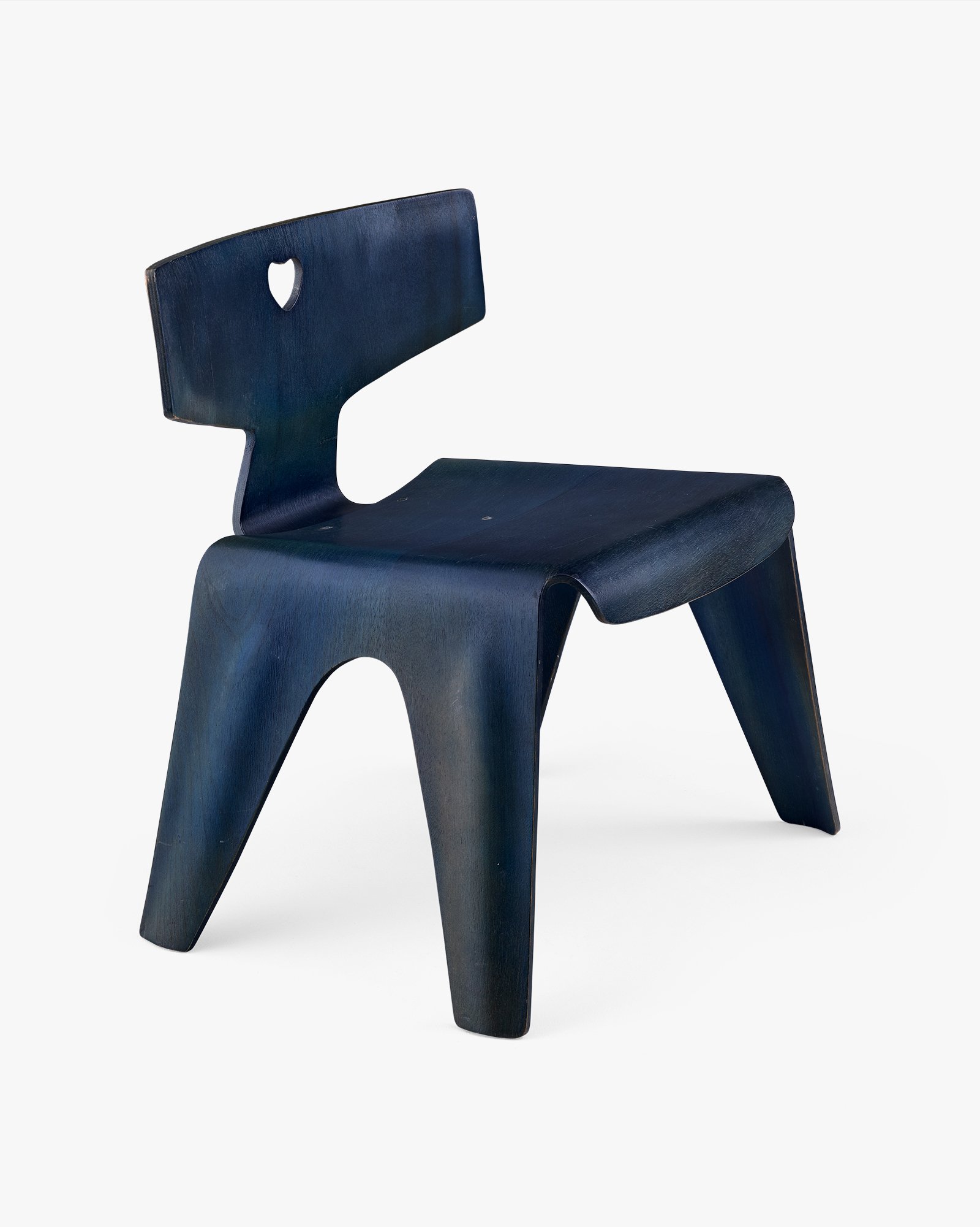 This stackable child’s chair has a charming heart cutout in the back, which allows the user to lift the chair with one finger. The chair was included in the 1946 MoMA exhibition New Furniture Designed by Charles Eames and featured on the cover of House & Garden magazine’s Christmas gifts issue.