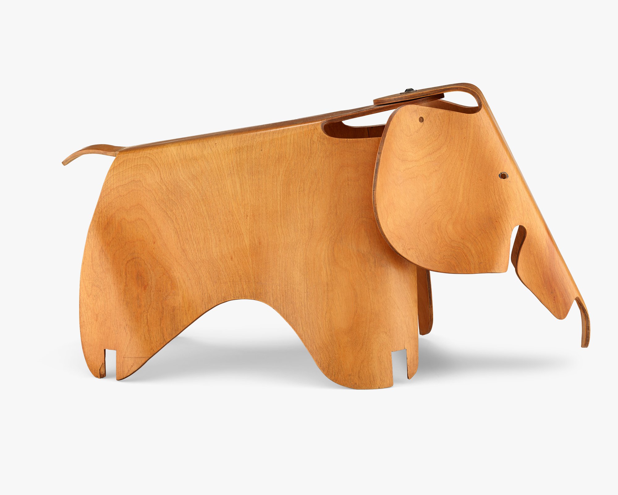 This charming molded plywood elephant was an experiment for Ray and Charles as they explored plywood animals in 1945. The manufacturing technique was challenging.