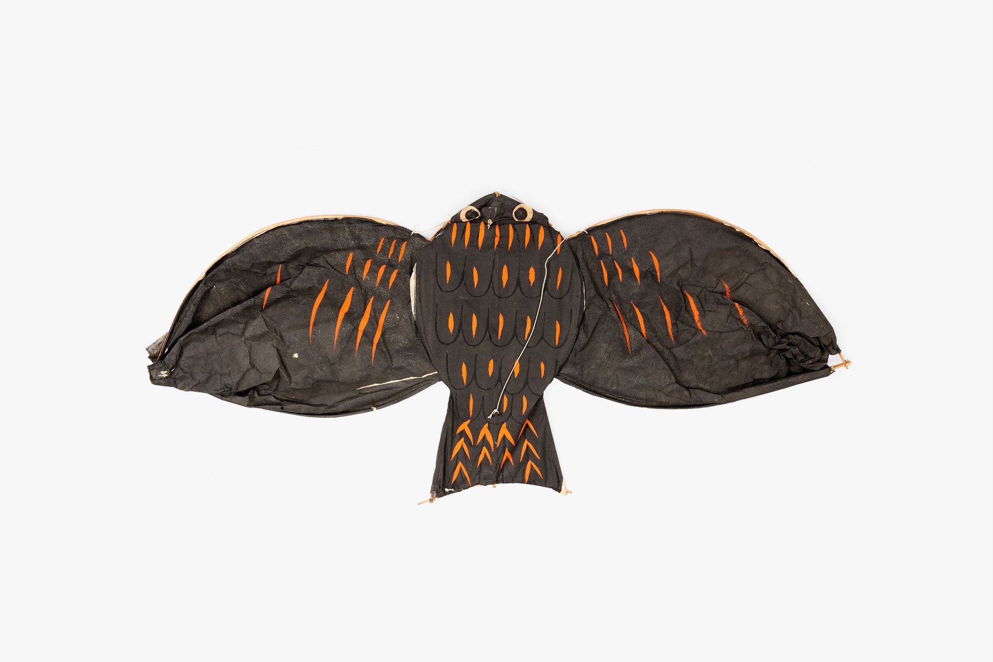This kite is one of many that decorated the walls of the Eameses’ home and studio over the years, and which made appearances in their showroom stagings for Herman Miller. Made of ink on paper with bamboo and string, the kite represents a sort of bird-fish hybrid with oversized fins/wings and orange markings that might be read as scales or feathers. Ray and Charles intentionally surrounded themselves with objects collected from around the world, as well as many that they received as gifts from friends. These items served as inspiration for their design practice with Ray noting, “We never collected anything just as collectors, but because something was inherent in the piece that made it seem like a good idea to be looking at.” Ray and Charles shared an appreciation for traditional craft goods with their close friend and collaborator Alexander Girard, who amassed a large collection of folk art that significantly informed his work.