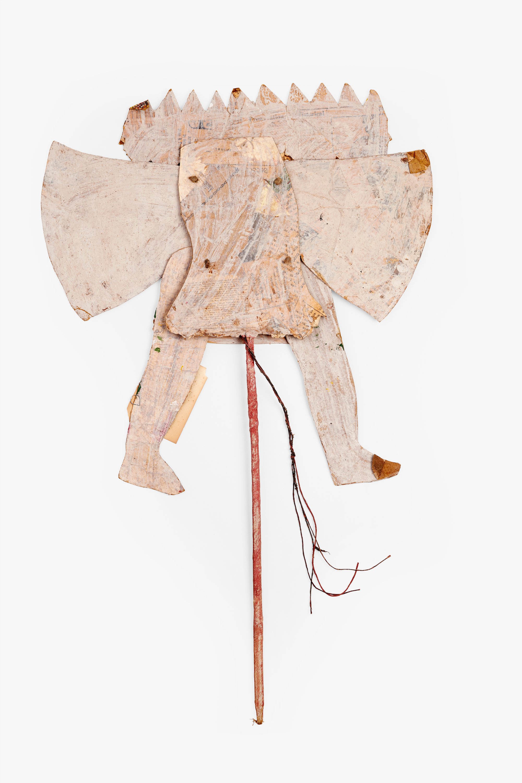 While shadow puppets like this are found in many cultures across Asia, Europe, and the Arabian Peninsula and form a part of a long-standing performing arts tradition, to Ray and Charles they offered another example of a universal typology associated with play. This particular puppet is from Andhra Padesh, a coastal state in southern India where shadow puppetry known as tholu bommalata dates to the 3rd century BCE. Tholu bommalata puppets are traditionally made from natural leather that is colored with vegetable dyes and other pigments. The two-dimensional puppets are used, along with fabric screens and bright lights, to create shadows that bring Indian folktales and Hindu epics to life. In this case, the puppet represents the character Ravana, a demon king with ten heads and twenty arms who is the primary antagonist in the Hindu epic, the Ramayana. Ravana’s many heads represent his expansive knowledge and powerful intellect, which he puts to nefarious use when he kidnaps Sita, the wife of the story’s hero Rama.
