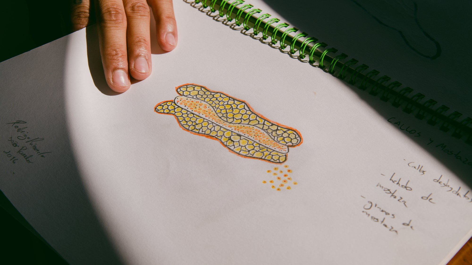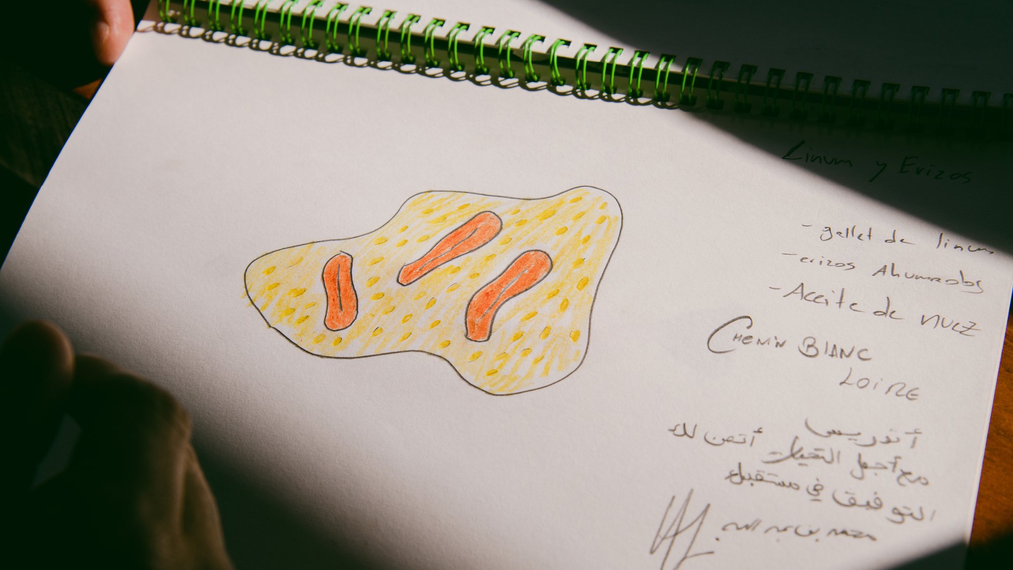 In the spring of 2020, when restaurants across the Bay Area shut down, chef Andres Giraldo Florez opened a notebook and started sketching. Florez, who had worked in some of the world’s most celebrated restaurants, from WD-50 to Mugaritz, wanted to open a new venue even in the midst of uncertainty. He felt that his ideal space would be a cave à manger—a wine shop–bar-restaurant hybrid—so he initially filled the pages with notes about wines. But soon, he also began to sketch dishes like sesame-crusted prawn toast with avocado ribbons, pickled seaweed, and salsa macha. These creations took form on the page, and a curated selection eventually became offerings at Snail Bar, his restaurant and natural wine bar located in Oakland, California. For Florez, putting pen to paper to conceive and visualize his menu is always an integral part of his process. “A dish has to be sketched out first,” he says. “I never cook food without thinking about it.”