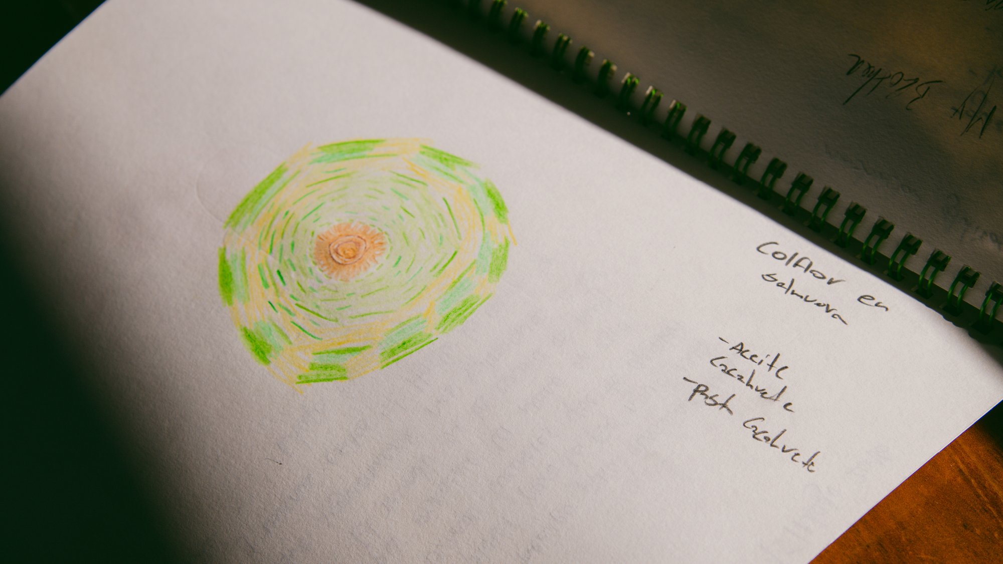 As Florez embraced this methodology, he began sketching, drawing, and even painting dishes in notebooks as he developed them. “Drawing a dish out shows me if it can actually happen or not,” he explains. “Really visualizing and then going into the execution of it—I feel like that’s how my brain works.”
